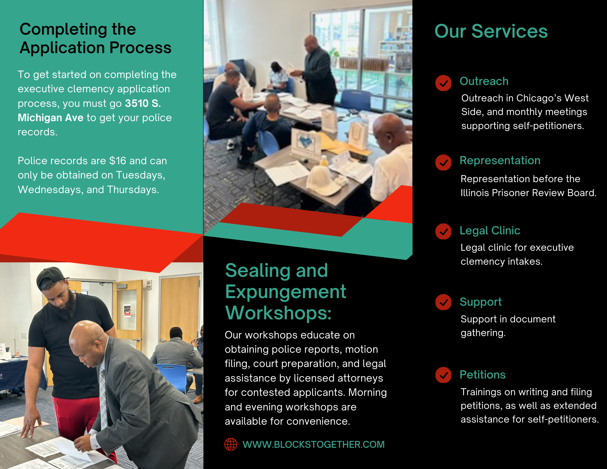 Blocks Together’s legal clinic, also known as the Executive Clemency Hub, is modeled after participatory defense.